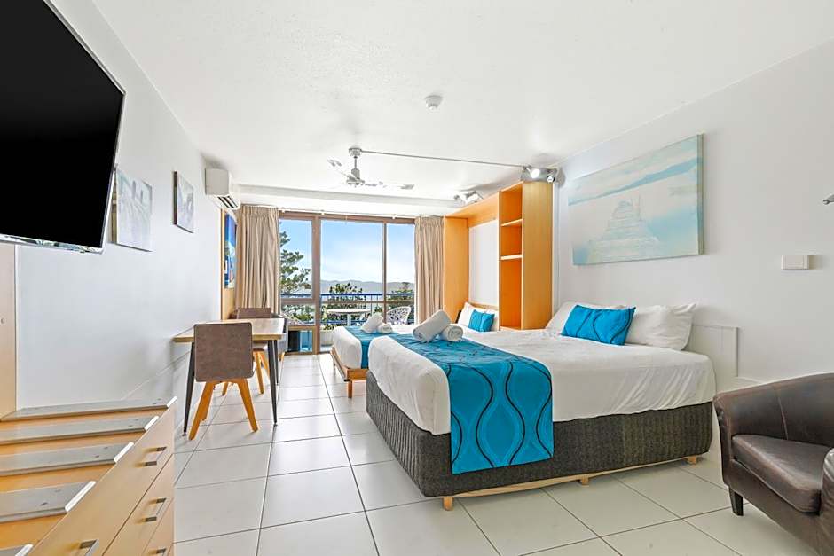 The double room's kitchenette, which features a refrigerator and a microwave, is available for cooking and storing food. The spacious double room provides air conditioning, a tea and coffee maker, a balcony with sea views as well as a private bathroom featuring a shower. The unit offers 1 bed. Apartments are individually styled and furnished and may differ from photos provided. Note that the photos are only indicative of the apartments. This room is located on level 1 so although you can see the ocean, this room does not have full uninterrupted ocean views. Breakfast is not available on Public Holidays.